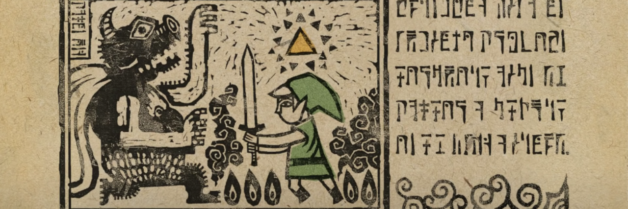 Keiji Terui, un scénariste qui a travaillé sur les adaptations en anime de Dr Slump et Dragon Ball, écrit l'histoire présentée dans le manuel, en s'inspirant de conflits s'étant déroulés en Europe durant le Moyen-Âge. Le jeu s'inspire également de l'univers du film Legend de Ridley Scott, sorti en 1985, Tom Cruise incarne une sorte d'elfe qui doit sauver le royaume sur lequel le Seigneur des Ténèbres veut faire s'abattre l'obscurité L'archétype du valeureux chevalier luttant contre un tirant pour délivrer le royaume peuplé d'elfes mais aussi de fées renvoie à l'heroic fantasy mais aussi au genre littéraire du conte. Il s'inspire aussi des livres du Seigneur des Anneaux de J.R.R Tolkien. Miyamoto emprunte également à The Tower of Druaga de Namco, les premières versions de The Legend of Zelda n'étant qu'un enchainement de donjon souterrains. Chaque donjon était représenté par une montagne à traverser via ses souterrains et le jeu en comportait environ cinq plus le dernier donjon. Miyamoto est un fan de The Tower of Druaga qui domine les salles d'arcades, au point de s'être fait livrer une borne de cet action-RPG au bureau, mais c'est aussi un moyen de mieux appréhender les mécaniques du jeu. Cependant, le jeu est déjà très orienté vers les énigmes (aussi appelées secrets) et le devient de plus en plus jusqu'au point où Miyamoto se demande même si Adventure title est bien un jeu d'aventure. Dès les premières semaines, des dessins de Link apparaissent: il est équipé d'une épée, de bombes et d'un arc. D'autres objets qui deviennent par la suite des marqueurs de la série sont également présent: des clées, des bougies ou des fioles.